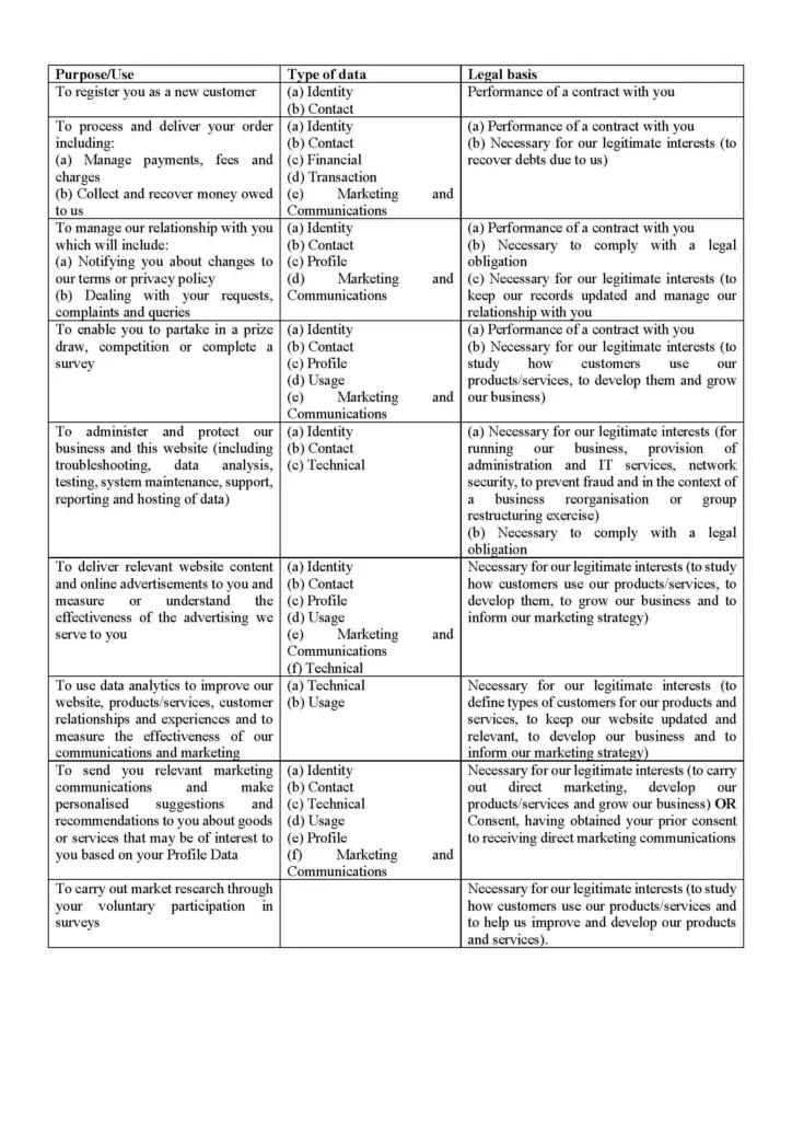 · Technical Data includes internet protocol (IP) address, your login data, browser type and version, time zone setting and location, browser plug-in types and versions, operating system and platform, device ID and other technology on the devices you use to access this website.